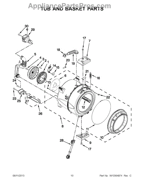 This tub clamp secures a flexible seal or hose to the appliance's tub, maintaining a tight, leak-resistant connection. Replace a weakened or damaged clamp to stop leaks and keep the tub joint stable during operation.