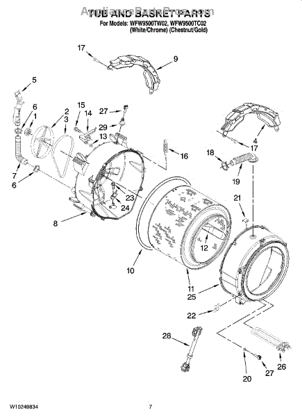 Parts for Whirlpool WFW9500TC02: 05 - Tub And Basket Parts