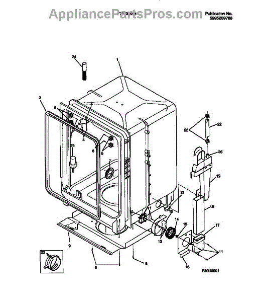 The Side Mount Kit is an OEM replacement part for Frigidaire dishwashers. It contains mounting brackets, screws, and other hardware required to securely install the dishwasher against cabinetry in a side-by-side configuration. Proper attachment is necessary for stability and safety during operation.