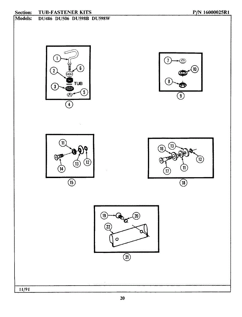 Parts for Jenn-Air DU486: 10 - Tub Fastener Kit Parts