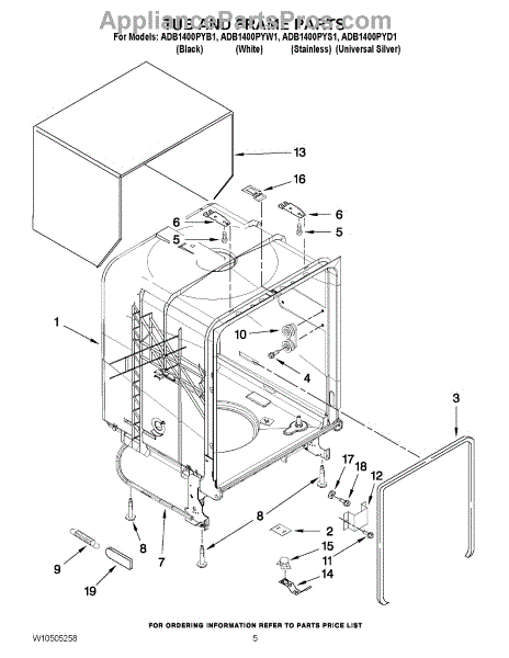 Parts for Amana ADB1400PYW1: 05 - Tub And Frame Parts