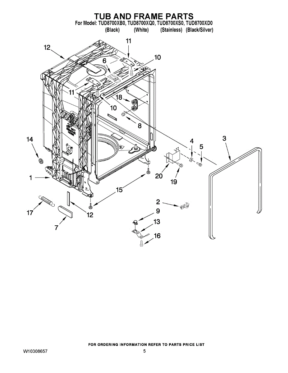 Parts for Estate TUD8700XB0: 05 - Tub And Frame Parts