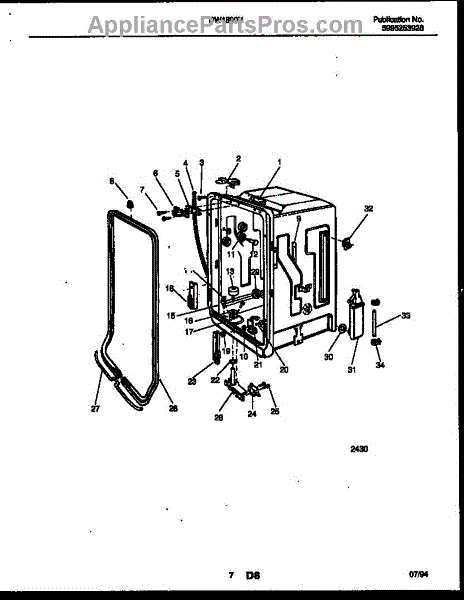 The Side Mount Kit is an OEM replacement part for Frigidaire dishwashers. It contains mounting brackets, screws, and other hardware required to securely install the dishwasher against cabinetry in a side-by-side configuration. Proper attachment is necessary for stability and safety during operation.