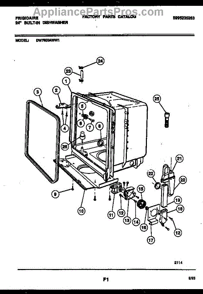 Parts for Frigidaire DW7800AWW1: 05 - Tub And Frame Parts