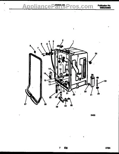 The Side Mount Kit is an OEM replacement part for Frigidaire dishwashers. It contains mounting brackets, screws, and other hardware required to securely install the dishwasher against cabinetry in a side-by-side configuration. Proper attachment is necessary for stability and safety during operation.