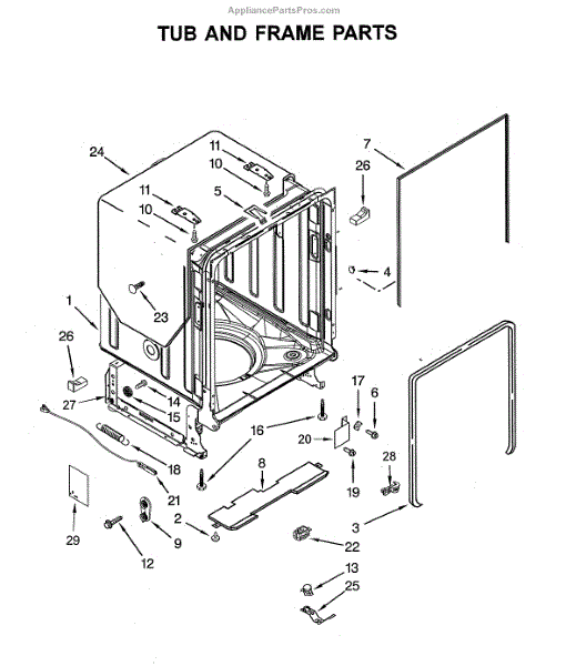 The door balance mount is the side-frame bracket that supports the dishwasher's door counterbalance system. When worn or broken, it can let the door drop, slam, bind, or feel heavy. Replacing it restores smooth, controlled door movement. What it does