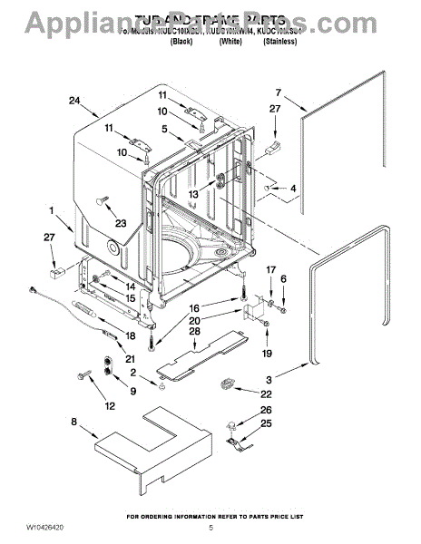 Parts for Kitchenaid KUDC10IXWH4: 05 - Tub And Frame Parts