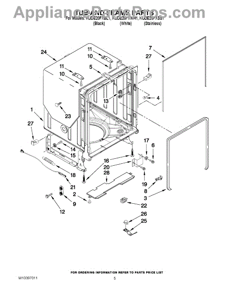 Parts for Kitchenaid KUDE20FXBL1: 05 - Tub And Frame Parts