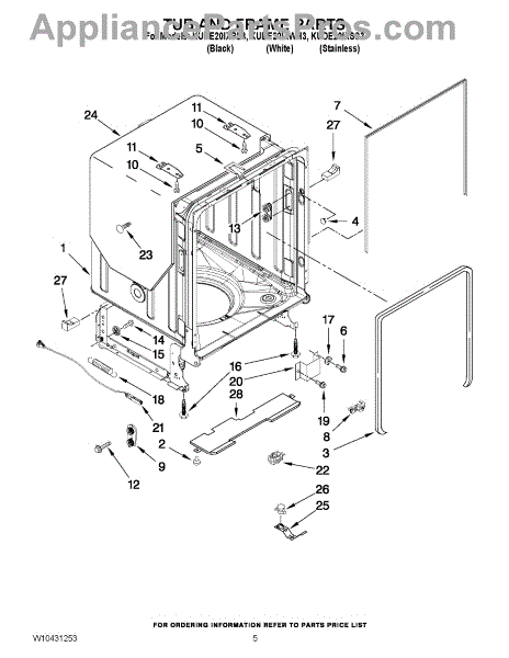 Parts for Kitchenaid KUDE20IXWH3: 05 - Tub And Frame Parts