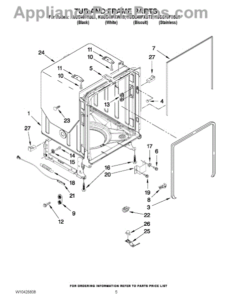 The primary causes of wear or damage to the tub wheel assembly can include regular use, excessive load on the racks, or accidental force applied when loading or unloading dishes. These can lead to broken wheels or dislodged fittings, necessitating replacement to maintain functionality.