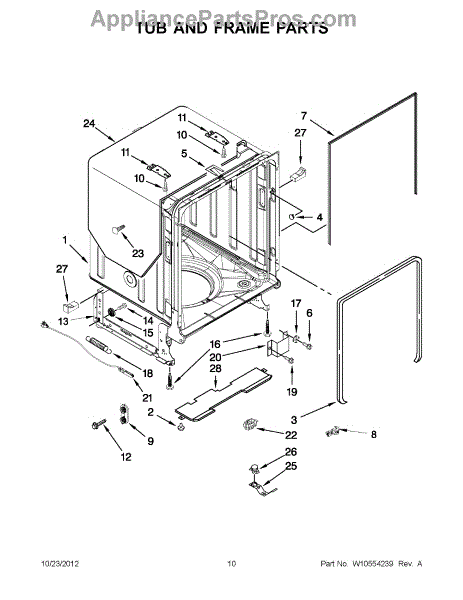 The Dishwasher Door Seal is an OEM replacement part for Whirlpool dishwashers. It provides a tight seal around the dishwasher door to prevent water, sound, and heat from escaping during the wash cycle. Measuring 71” in length (and stretching up to 75”), this door seal prevents water from leaking out during wash cycles.
