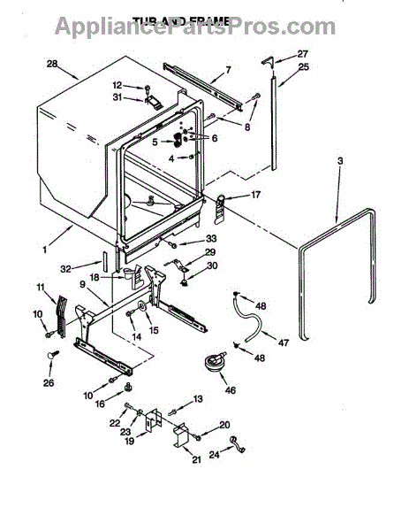 Parts for Kitchenaid KUDS25SEWH0: Tub And Frame Parts