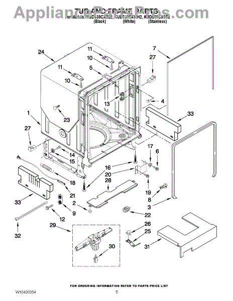 Parts for Kitchenaid KUDS30CXWH2: 05 - Tub And Frame Parts