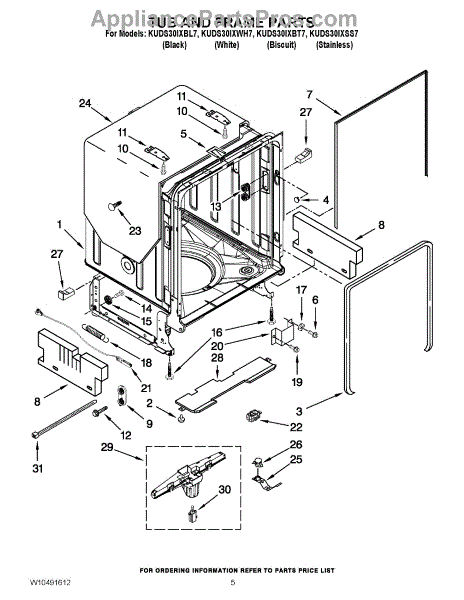 Parts for Kitchenaid KUDS30IXBL7: 05 - Tub And Frame Parts