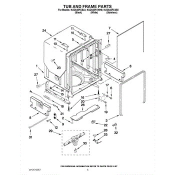 Parts for Kitchenaid KUDS35FXWH8: 05 - Tub And Frame Parts