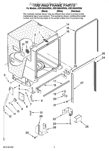 Parts for Maytag JDB1090AWB36: 07 - Tub And Frame Parts