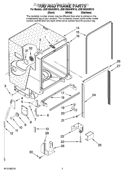Parts for Maytag JDB1095AWS10: 07 - Tub And Frame Parts