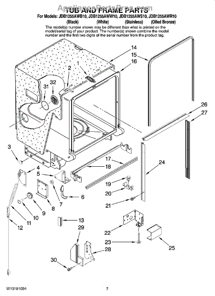 Parts for Maytag JDB1255AWB10: 07 - Tub And Frame Parts