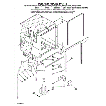 Parts for Maytag JDB1255AWR0: 07 - Tub And Frame Parts