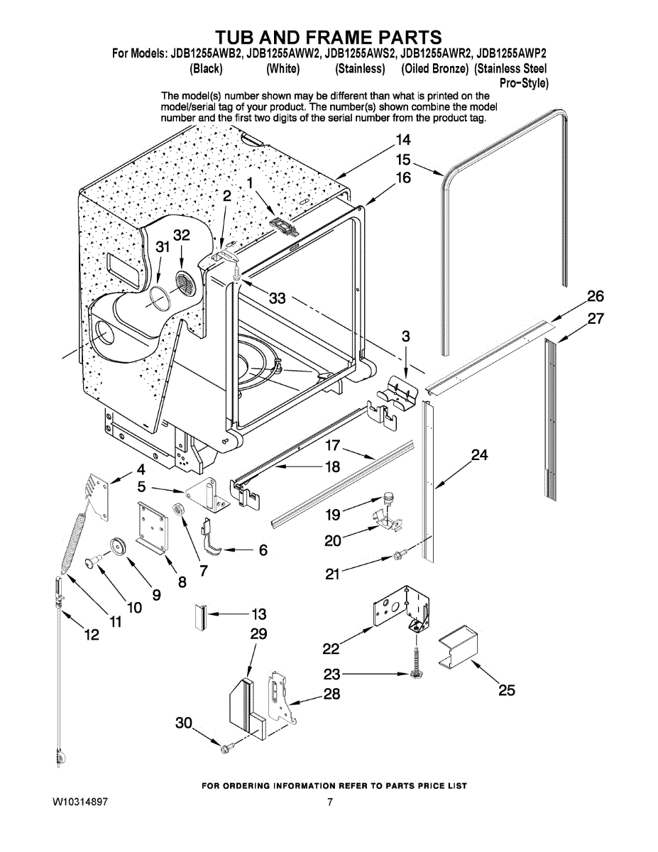 Replace your dishwasher's left corner trim to restore the door edge finish and protect the gasket area. Verify fit with your model number before ordering.