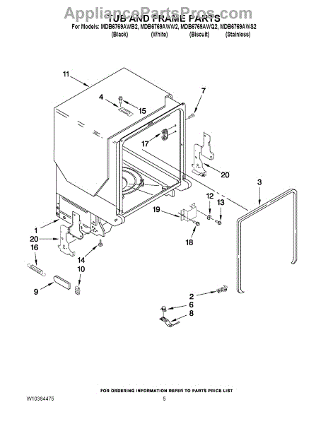 Parts for Maytag MDB6769AWB2: 05 - Tub And Frame Parts