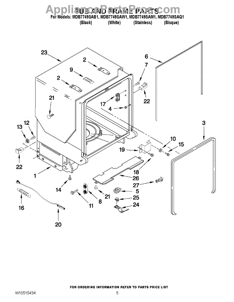 Parts for Maytag MDB7749SAW1: 05 - Tub And Frame Parts