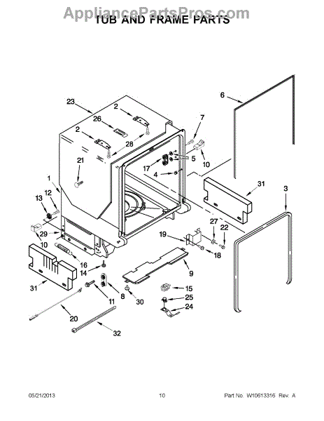 The Cabinet Seal is an OEM part for Whirlpool dishwashers. This seal is crucial for preventing water leaks by creating a watertight barrier between the dishwasher tub and the door. It ensures that water stays inside the dishwasher during the wash cycle, maintaining the appliance's efficiency and protecting your kitchen from water damage.