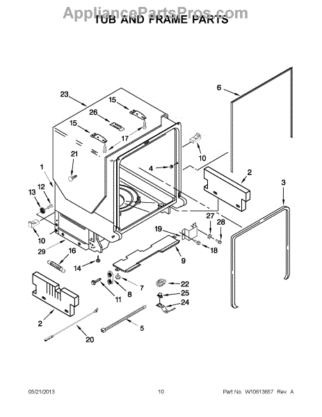 The Cabinet Seal is an OEM part for Whirlpool dishwashers. This seal is crucial for preventing water leaks by creating a watertight barrier between the dishwasher tub and the door. It ensures that water stays inside the dishwasher during the wash cycle, maintaining the appliance's efficiency and protecting your kitchen from water damage.