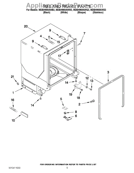 Parts for Maytag MDBH969AWB3: 05 - Tub And Frame Parts