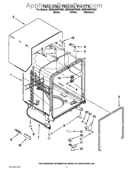 Parts for Maytag MDBS469PAS0: 05 - Tub And Frame Parts