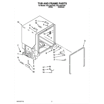 Parts for Whirlpool 7DU1100XTSQ0: 07 - Tub And Frame Parts
