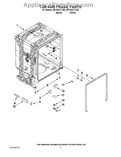 Parts for Whirlpool DP1040XTXQ3: 05 - Tub And Frame Parts