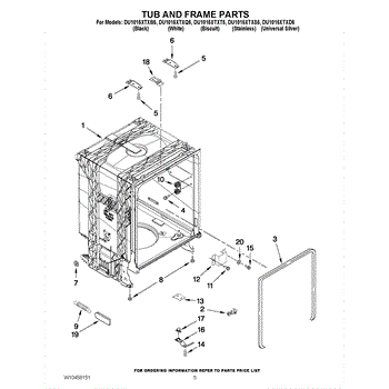 Parts for Whirlpool DU1015XTXB5: 05 - Tub And Frame Parts
