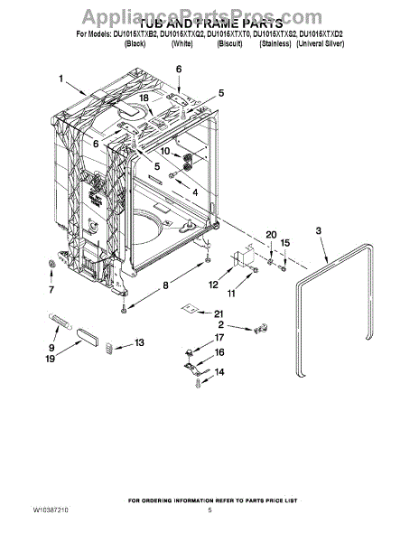 Parts for Whirlpool DU1015XTXQ2: 05 - Tub And Frame Parts