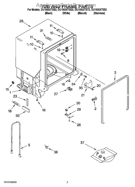 Parts for Whirlpool DU1055XTSB2: 07 - Tub And Frame Parts