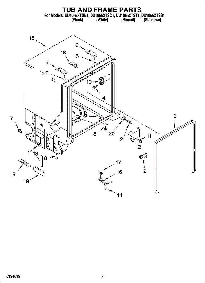 Complete dishwasher tub assembly. Replaces cracked, leaking, or damaged tubs that cannot be reliably repaired due to heat and detergent exposure.
