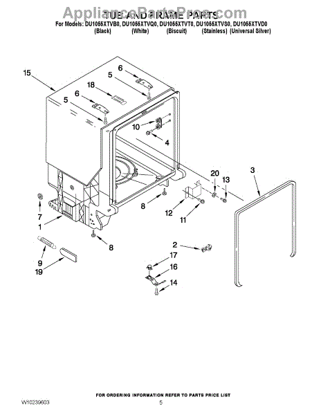 Parts for Whirlpool DU1055XTVT0: 05 - Tub And Frame Parts