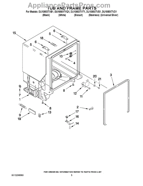 Parts for Whirlpool DU1055XTVT1: 05 - Tub And Frame Parts