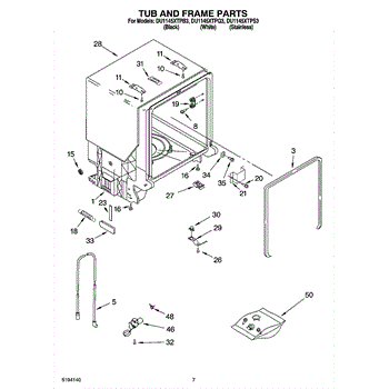 Parts for Whirlpool DU1145XTPB3: 07 - Tub And Frame Parts