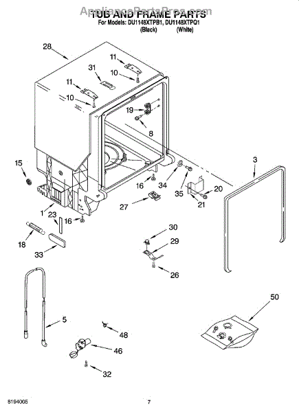 Parts for Whirlpool DU1148XTPB1: 07 - Tub And Frame Parts