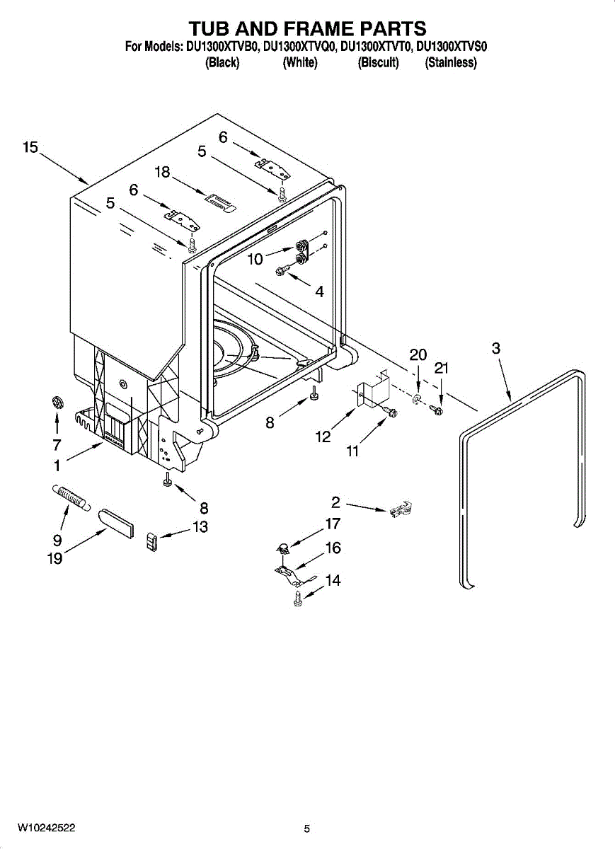 Complete dishwasher tub assembly. Replaces cracked, leaking, or damaged tubs that cannot be reliably repaired due to heat and detergent exposure.