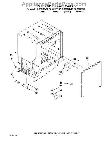 Parts for Whirlpool DU1301XTVQ2: 05 - Tub And Frame Parts