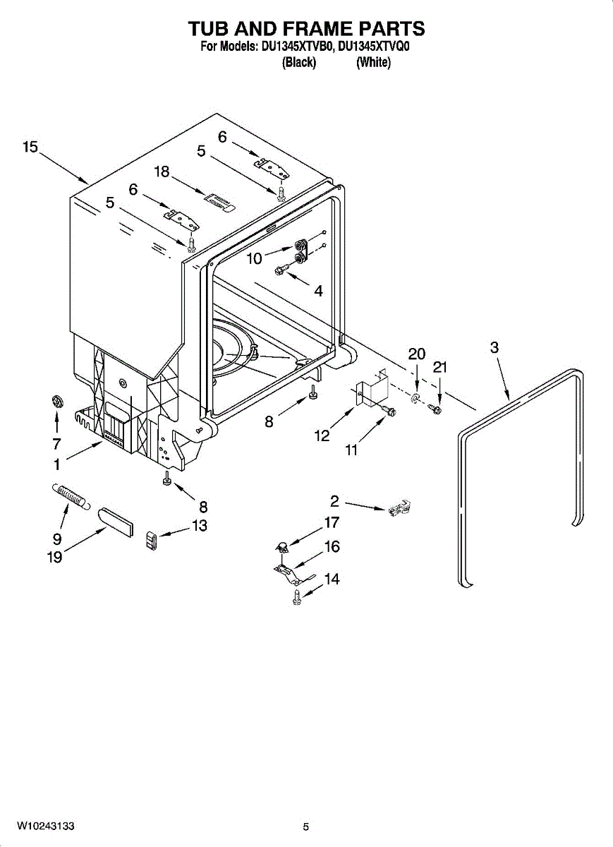 Complete dishwasher tub assembly. Replaces cracked, leaking, or damaged tubs that cannot be reliably repaired due to heat and detergent exposure.