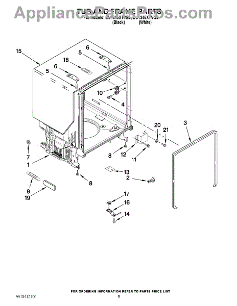 Complete dishwasher tub assembly. Replaces cracked, leaking, or damaged tubs that cannot be reliably repaired due to heat and detergent exposure.