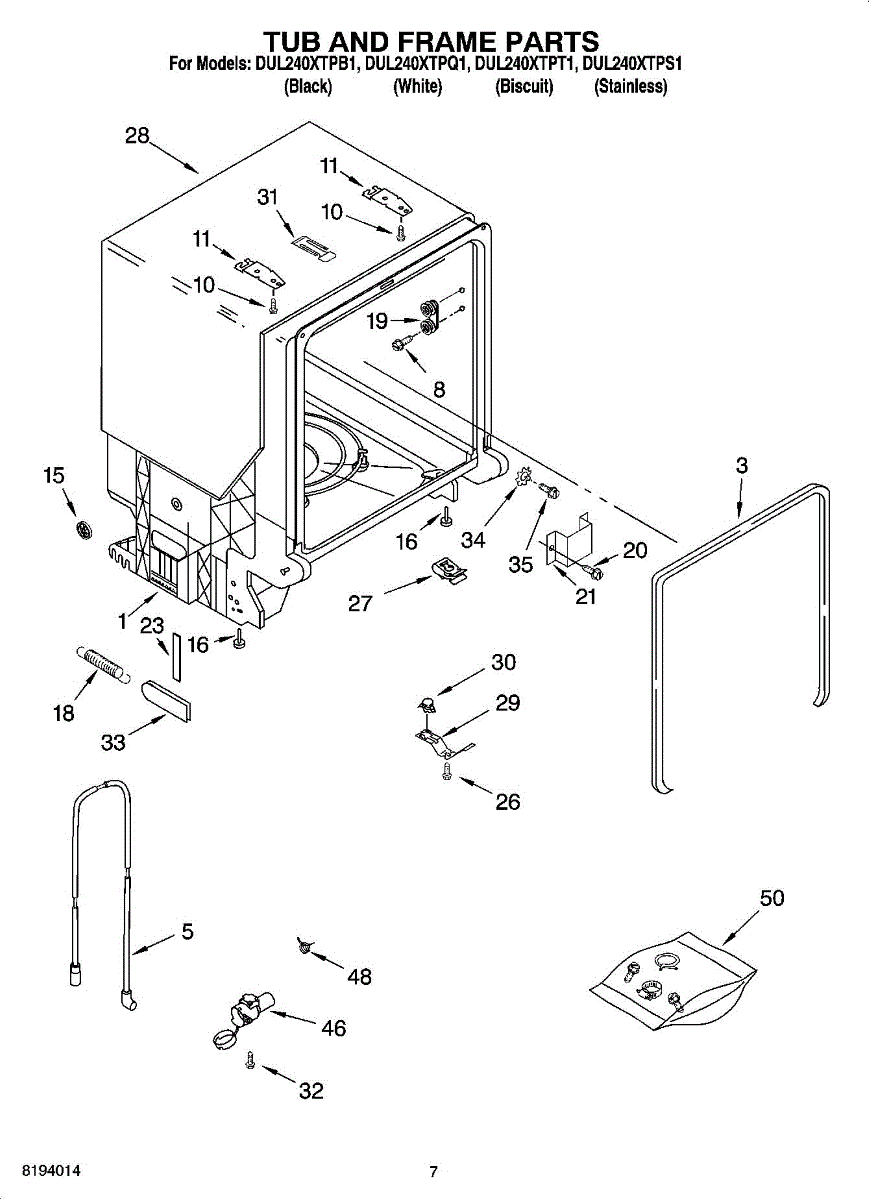 Complete dishwasher tub assembly. Replaces cracked, leaking, or damaged tubs that cannot be reliably repaired due to heat and detergent exposure.