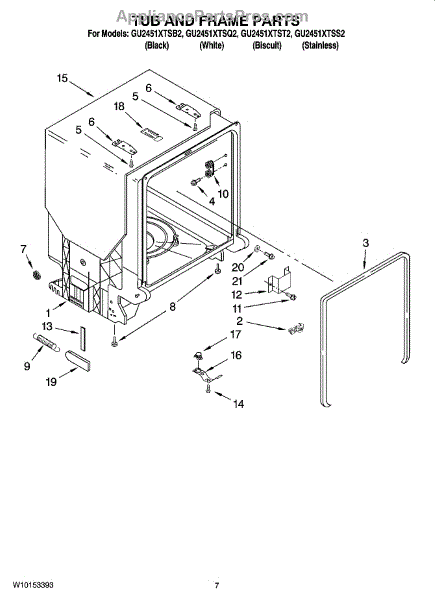 Parts for Whirlpool GU2451XTSB2: 07 - Tub And Frame Parts