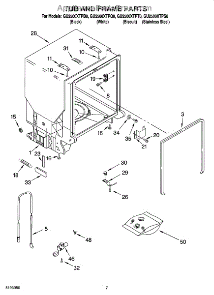 Parts for Whirlpool GU2500XTPS0: 07 - Tub And Frame Parts
