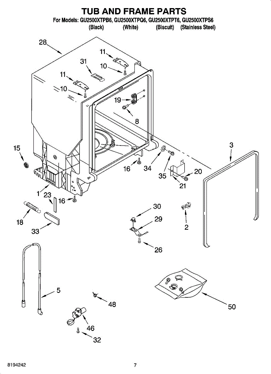 Complete dishwasher tub assembly. Replaces cracked, leaking, or damaged tubs that cannot be reliably repaired due to heat and detergent exposure.