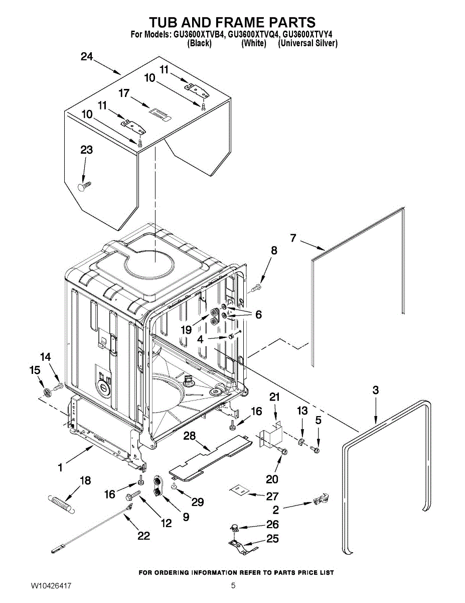Seals the dishwasher tub to the cabinet opening, reducing noise and preventing gaps. Replace if worn, damaged, or missing for proper fit and sound control.