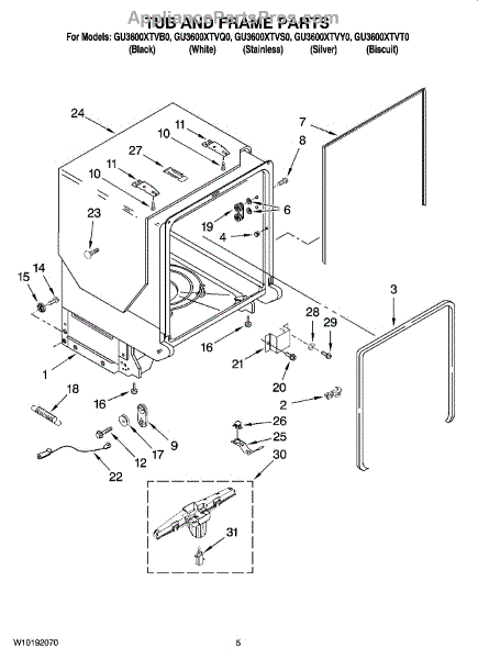The Gasket is an OEM part for Whirlpool dishwashers. This gasket seals the gap between the dishwasher door and the main tub, preventing water from leaking out during the wash cycle. It ensures a watertight seal that helps maintain the efficiency and performance of the dishwasher.